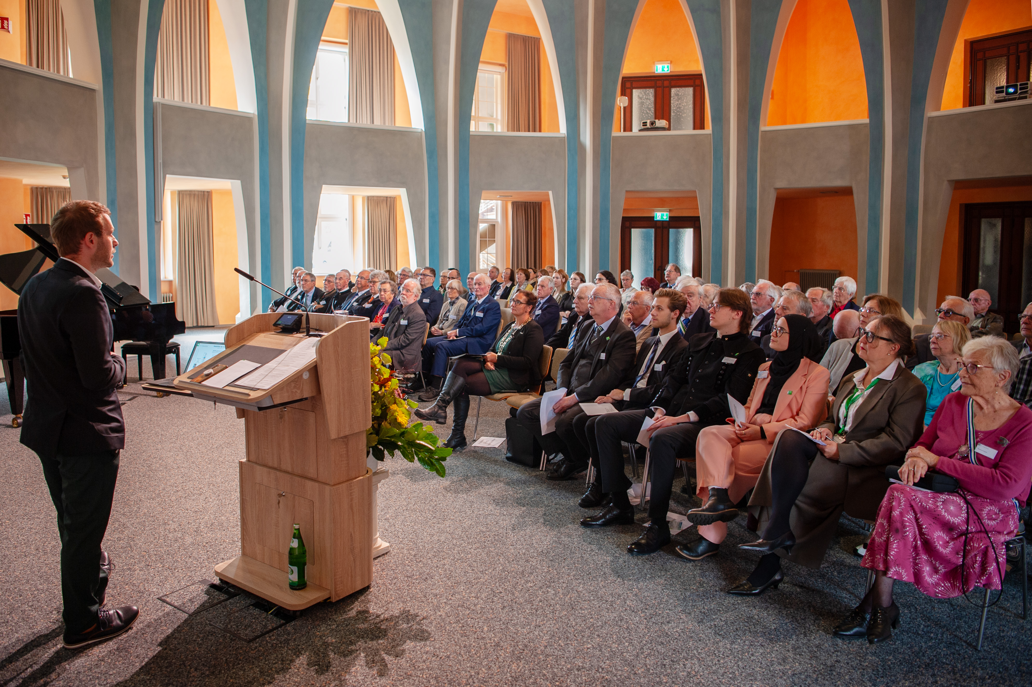Die Feierstunde wurde musikalisch begleitet durch Hosea Simanjuntak am Klavier mit Gesang. Im Anschluss gab es im Festsaal einen Sektempfang und Imbiss, bei dem Studierende die Chance nutzten, sich mit den erfahreneren Alumni auszutauschen.